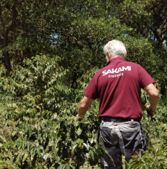 Hrabstwo: Trans NzoiaFarma: Sakami Wysokość upraw: 1800 m n.p.m. Gatunek: 100% Arabika Odmiany: SL28, Ruiru 11, Batian, K7 Obróbka: submergedZbiór: 2025 Punktacja SCA dla zielonego ziarna: 87 Stopień palenia: jasnyProfil smakowy: ananas - biały grejpfrut - czarna herbata - mandarynki - brązowy cukierData palenia: maksymalnie 14 dni wstecz od złożenia zamówienia Do pary z Kenią Sakami Honey mamy dla Was podwodną obróbkę beztlenową w postaci Kenii Sakami Submerged. Brzmi kosmicznie, ale jest to bardzo proste. Zamknięte beczki lądują w wodzie i cały proces, ze względu na niższą temperaturę, zachodzi dużo wolnej. Kenia Sakami Submerged ma dużo soczystej kwasowości, która tylko czeka na nadchodzące słońce! Sakami Coffee to farma i zarazem kooperatywa o niezwykłym potencjale. Prowadzona jest przez Kenijkę Glorię i męża Jarmo (pochodzi z Finlandii). Ich priorytetem jest harmonijne współistnienie z naturą oraz troska o środowisko. Na farmie zainstalowano panele słoneczne, aby maksymalnie wykorzystywać odnawialne źródła energii. Gloria i Jarmo sadzą drzewa makadamii między krzewami kawowca, tworząc bardziej zróżnicowany ekosystem. Znaczna część terenu pozostaje dzika - roślinność rozwija się tam naturalnie, bez ingerencji człowieka. Wśród bujnej flory znajdują się ule, a farmerzy świadomie rezygnują z pestycydów i herbicydów. Owoce kawowca i łupiny orzechów są kompostowane i wykorzystywane jako naturalny nawóz, a woda używana do mytej obróbki kawy jest odzyskiwana i przeznaczana na nawadnianie pobliskich pastwisk. To miejsce, gdzie tradycja uprawy kawy łączy się z ekologicznymi rozwiązaniami, tworząc zrównoważoną i przyjazną naturze przestrzeń. Po zbiorach wisienki umieszcza się w beczce z jednostronnym wentylem na 36 godzin. Po wyciągnięciu następuje standardowe pozbycie się miąższu w depulperze. Tutaj miejsce ma kolejny specyficzny detal obróbki farmy Sakami - przed umyciem ziaren z owocowych soków zostawia się je do odpoczynku na 24 godziny, po czym myje i suszy na podwyższonych łożach. Kenia Sakami Submerged smakuje prawdziwym latem! Jest przede wszystkim owocowo i rześko z nutami czarnej herbaty. Na pierwszym planie możecie czuć dużo kwaskowatych nut grejpfruta, ananasa i pomelo. Ponadto w naparze obecna jest lekka pomarańczowość i trochę cukrowej słodyczy. Ziarenka polecamy wszystkim, którzy z nostalgią wspominają jak smakowały Kenie jeszcze kilka lat temu. Być może jeszcze nie wszystko stracone… :) KAWA DOSTĘPNA W ZESTAWIE PORÓWNAWCZYM ----> KENIA SAKAMI SET Przechowywanie i przygotowaniePrzechowywać w temperaturze pokojowej, w suchym i zacienionym miejscu oraz szczelnie zamkniętym opakowaniu. Zalecane metody przygotowania: metody przelewowe, Aeropress.